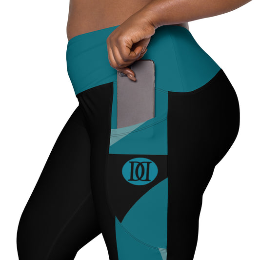 Teal Black Leggings with pockets